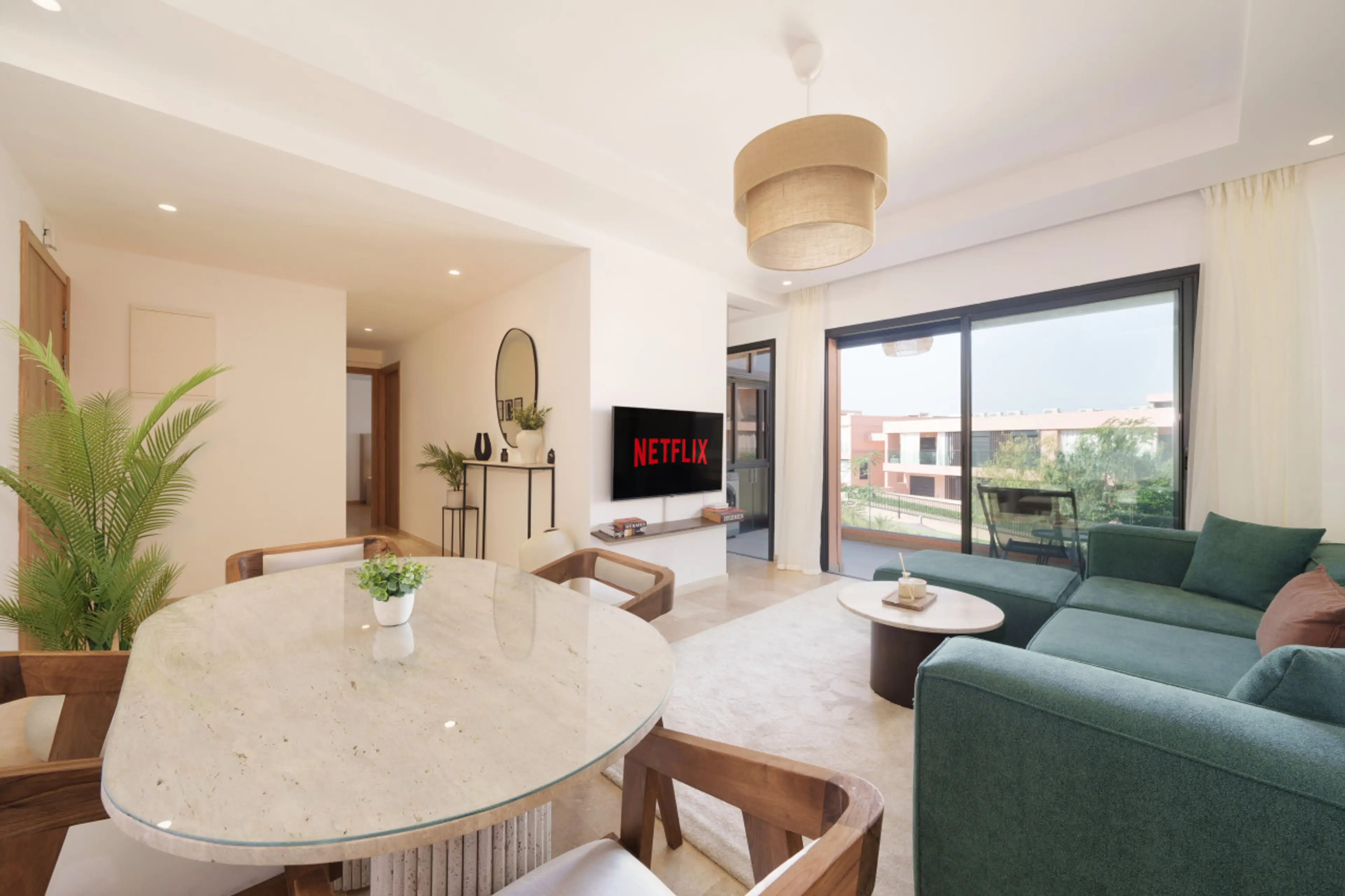 Bienvenue dans votre oasis de confort et de luxe à la Résidence Noria ! Niché à seulement 15 minutes du centre-ville animé et de l'emblématique place Jamaa El Fna, ainsi qu'à seulement 10 minutes du centre commercial Menara, cet appartement de deux chambres nouvellement disponible offre un mélange p...