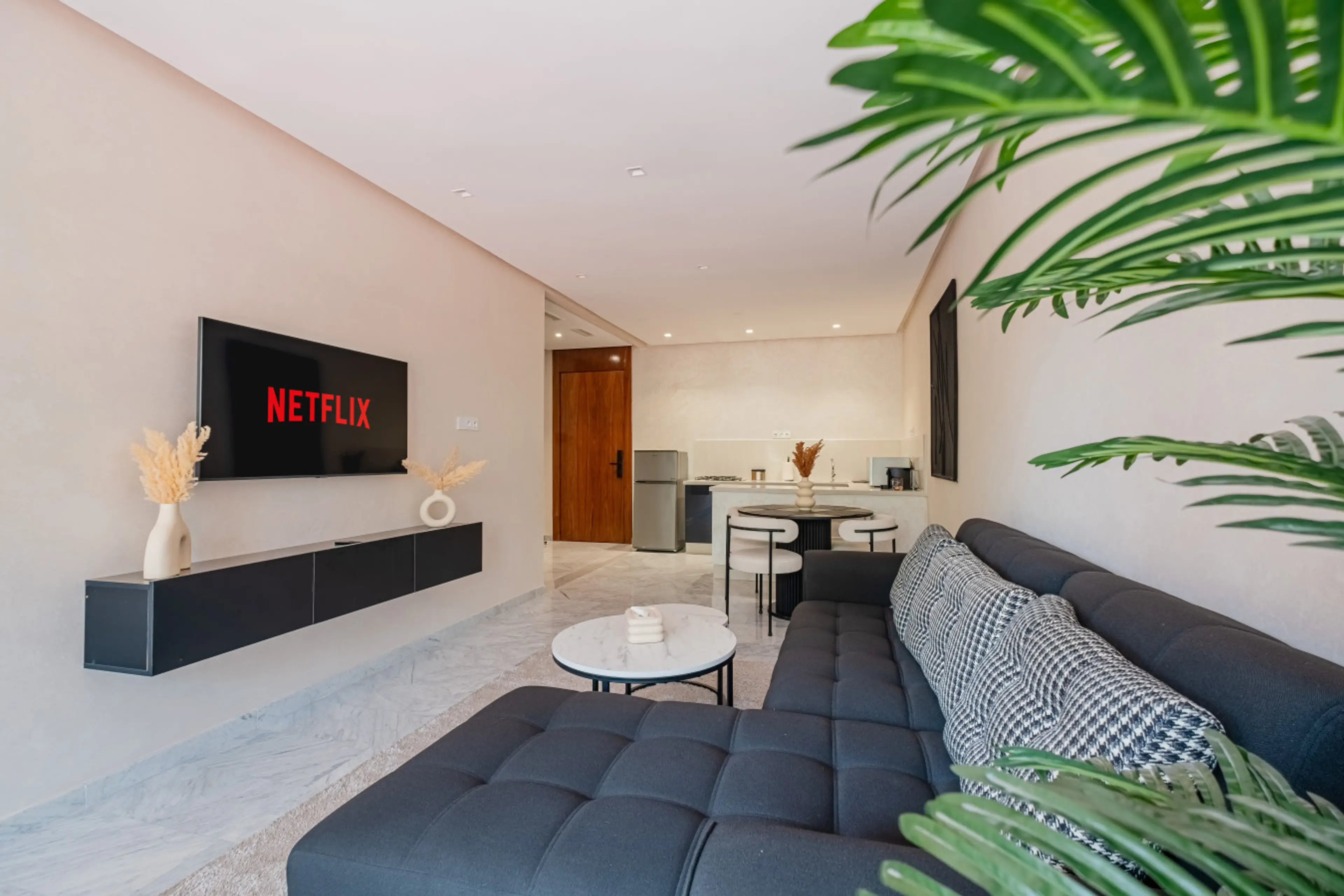 Superbe appartement d’une chambre avec terrasse ensoleillée, dans une résidence sécurisée 24/7 avec caméras. Lumineux, propre et bien entretenu, il offre un lit double climatisé, télévision dans le salon et la chambre, balcon aménagé, cuisine équipée et salle de bain avec sèche-cheveux. Idéalement s...