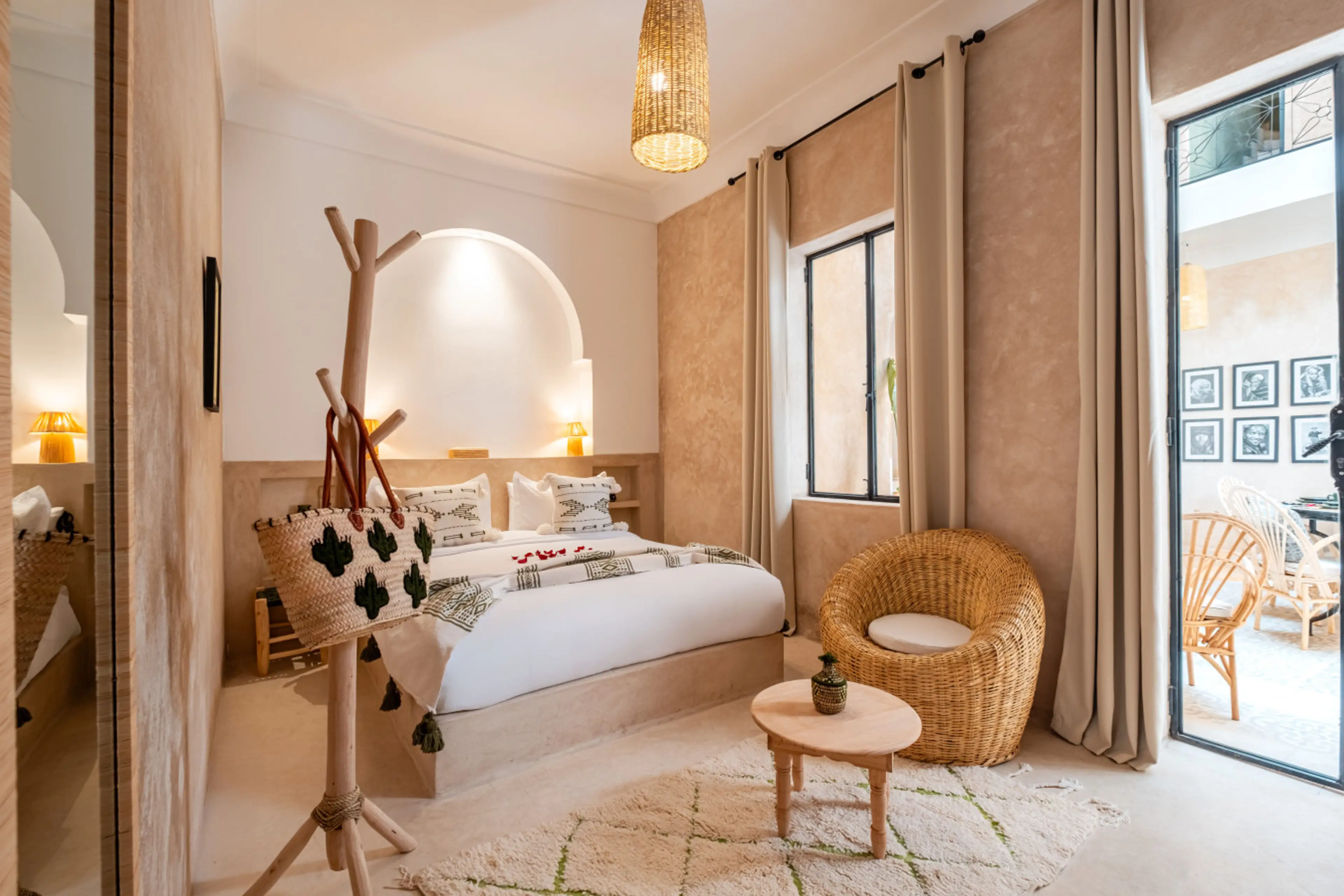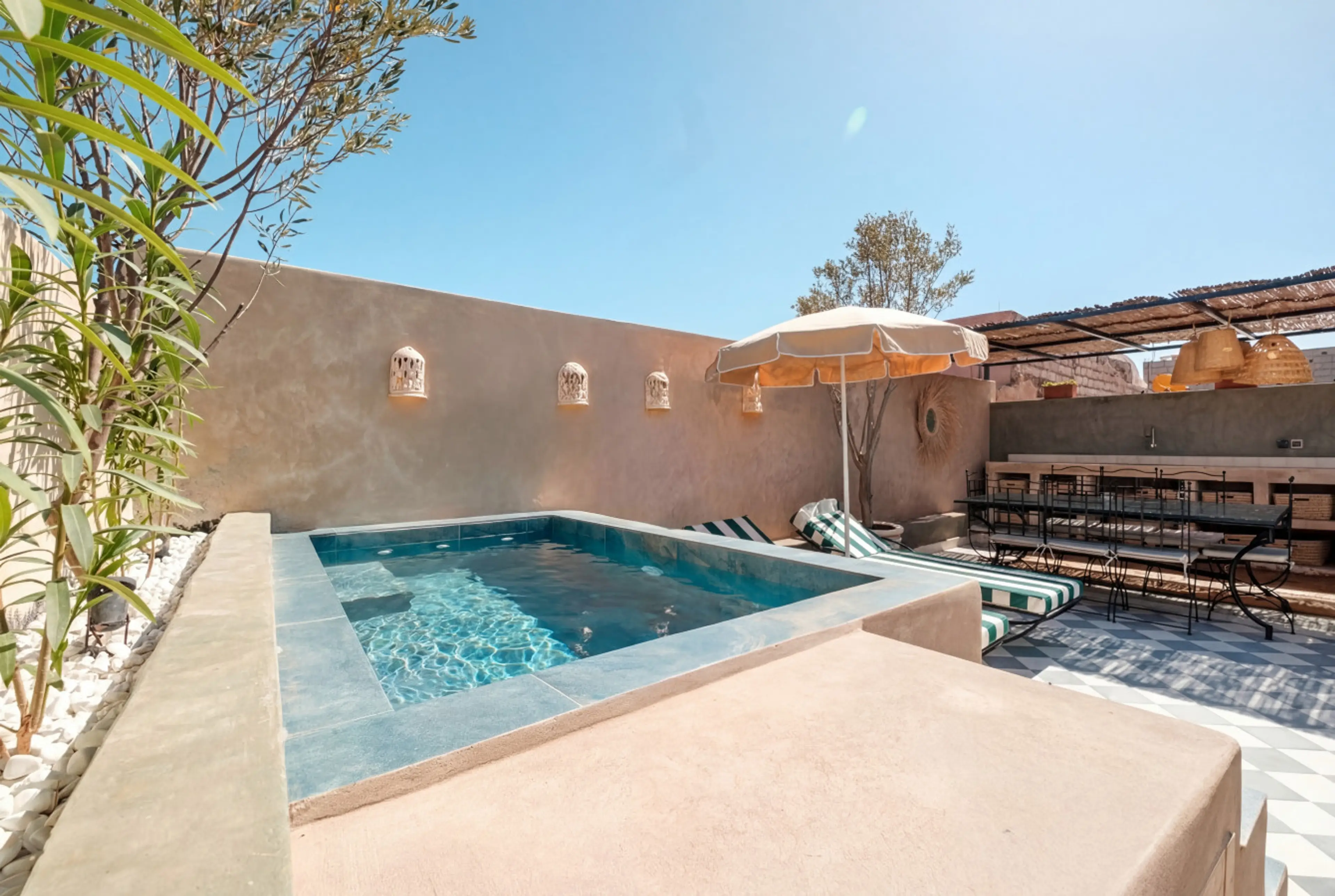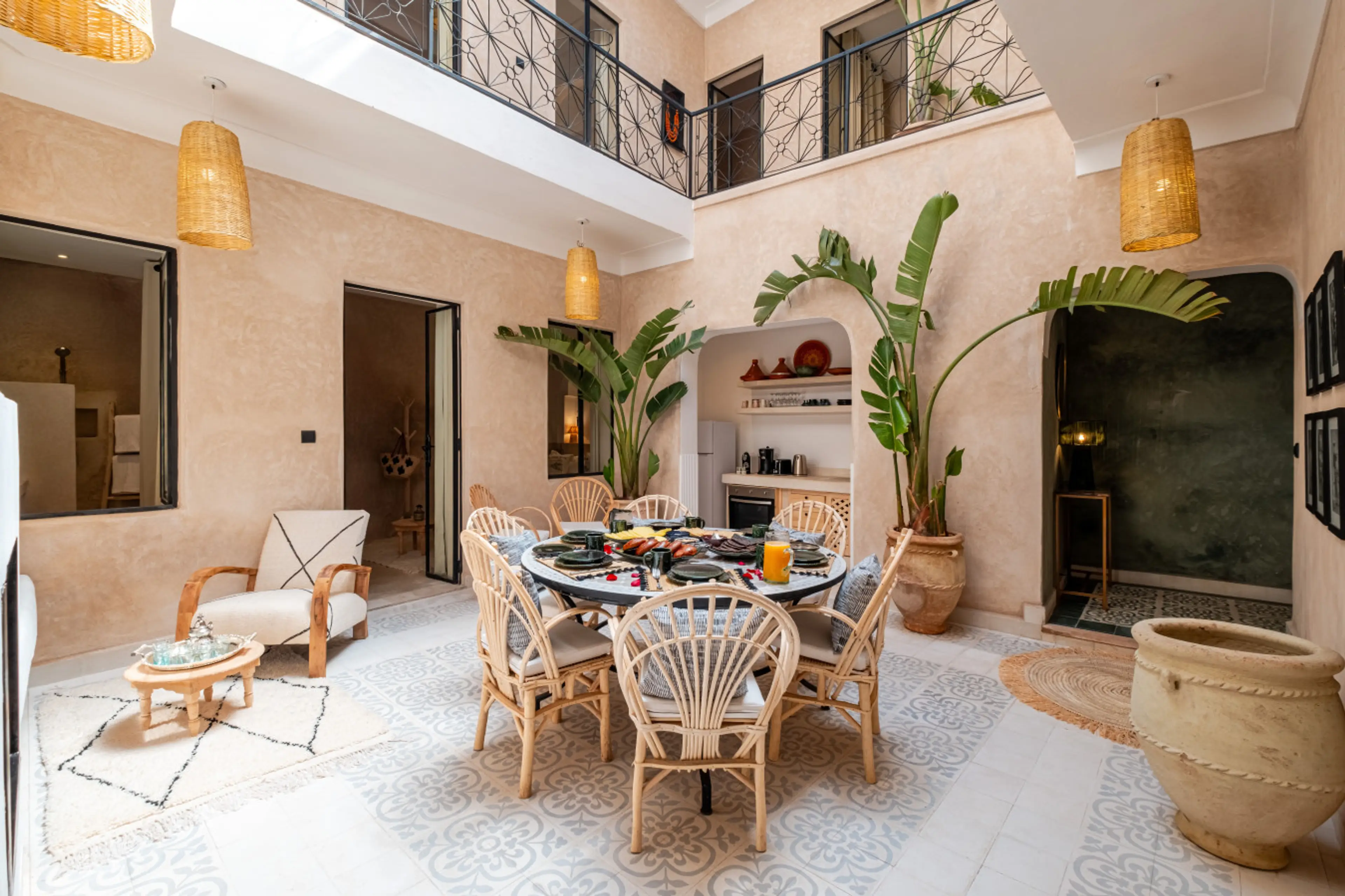 De cet authentique riad marocain, inspiré des demeures traditionnelles, on retrouve l’organisation typique autour d’espaces de vie conviviaux pensés pour le bien-être et la sérénité. La décoration mêle harmonieusement touches modernes et éléments artisanaux marocains pour créer une ambiance chaleu...